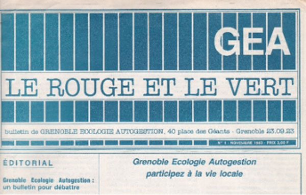 Un peu d’histoire : « Le Rouge et le Vert » en version papier a vu le jour fin 1983. Le choix de ce titre était à la fois un message politique et un clin d’œil au roman de Stendhal, (Henri Beyle) « Le Rouge et le Noir. » Ci-dessous une photographie d’une partie de la première page du premier numéro de novembre 1983.
